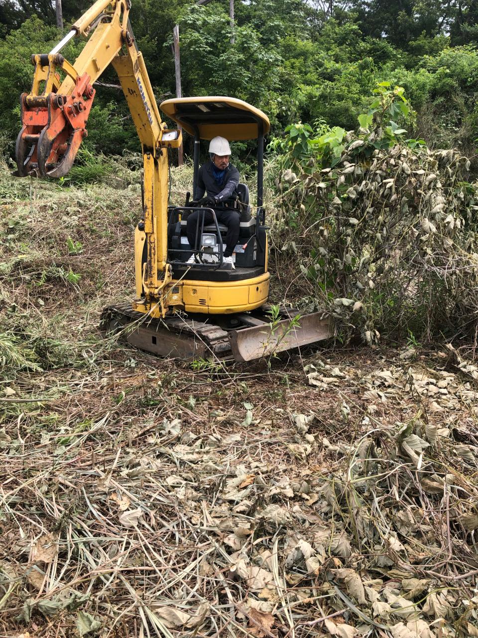 お疲れ様 本日の草刈作業 重機で草の集積!